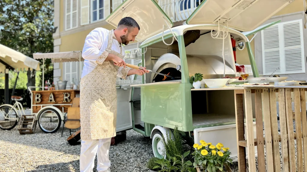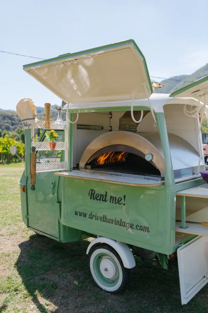 Ideal for informal receptions, outdoor parties, or late-night snacks at weddings, the Ape-Pizza combines authentic flavor with a warm, relaxed atmosphere.