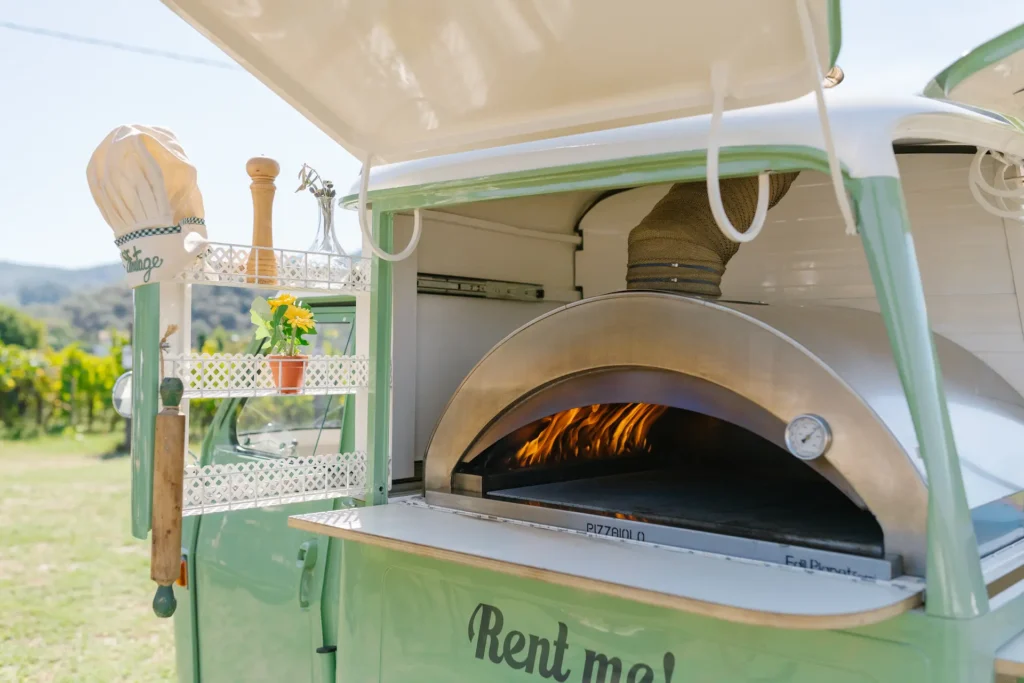 You can choose the complete service with pizza chef and ingredients, or simply rent the vehicle if you already have catering arrangements.